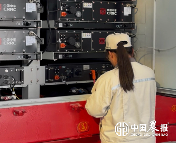 青海中车四方所新能源科技有限公司车间内,工作人员正在检查5兆瓦储能系统