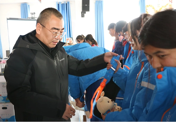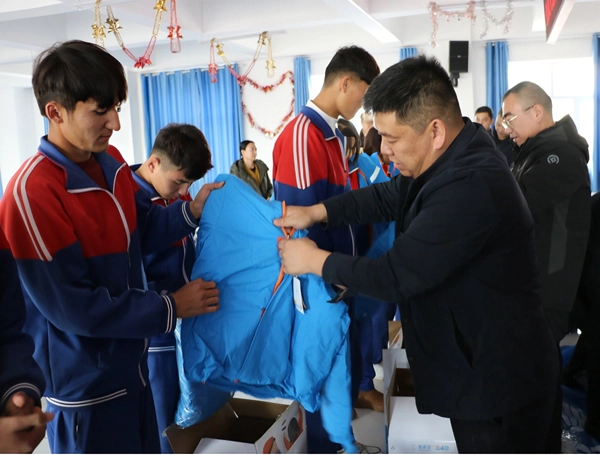 随后,与会领导和爱心企业代表为30名学生代表逐一发放温暖包。崭新的冬季衣物裹挟着满满关怀,孩子们脸上洋溢着幸福笑容,这份跨越寒冬的爱心馈赠,既抵御了严寒,更在他们心中播下了感恩与奉献的种子。