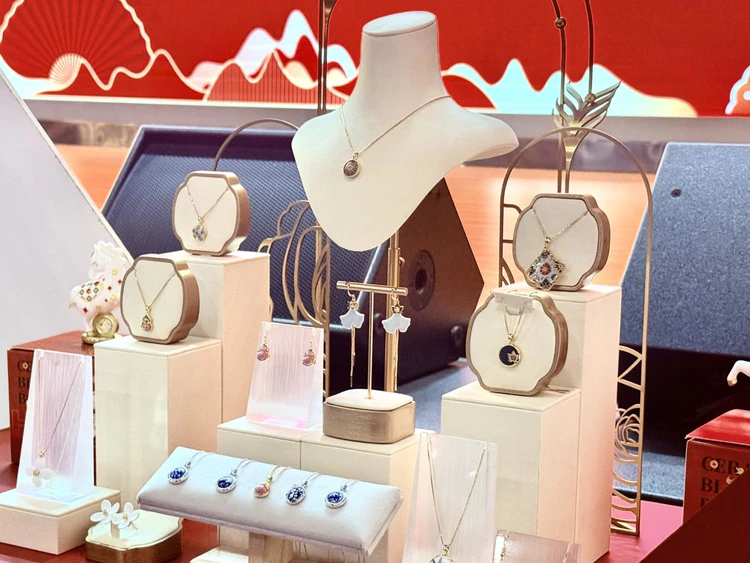 在万众期待中,嘉宾按下启动键,宣告国瓷红叶马年系列新品正式上市。发布会结束后,与会嘉宾移步展陈区,近距离品鉴新品雅韵,与非遗传承人互动交流,并在体验区尝试陶瓷首饰佩戴,亲身感受非遗创作过程,全方位领略景德镇陶瓷的匠心工艺与创新活力。