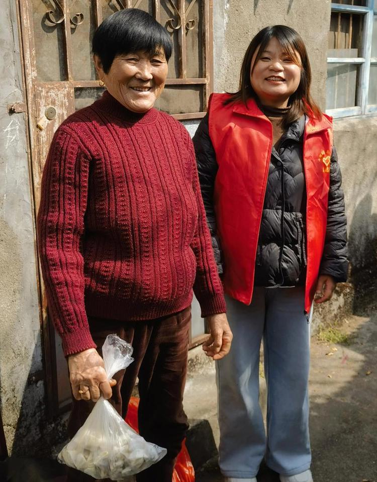 饺子包好后,社区工作人员与志愿者分组行动,提着精心打包、新鲜包好的爱心水饺,陆续走访了社区内孤寡老人、留守高龄老人及重度残疾人家庭。“阿姨,我们给您送饺子来啦!”每到一户,志愿者都亲切地俯身与老人拉家常、问冷暖,仔细询问他们的身体状况和生活起居,细心叮嘱他们注意饮食安全和天气变化,并耐心倾听老人们的心声与故事,用陪伴为老人们排解孤独和寂寞。