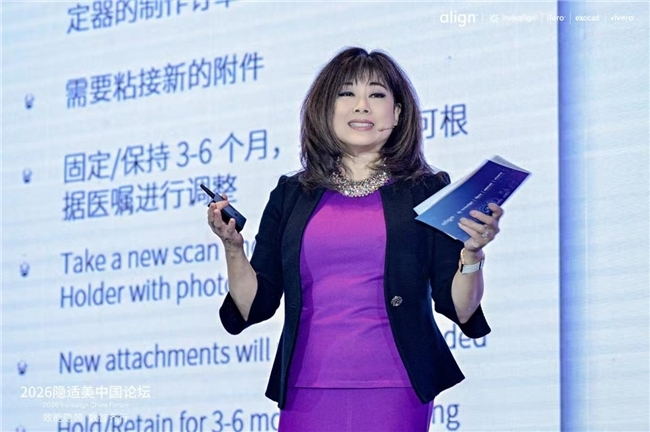 在临床技能进阶与医学体系建设方面,蔡嵐萍女士向全场重磅揭晓了本次大会的压轴亮点——正式启动“精扩有道·引领适代:2026隐适美扩弓案例大赛”。赛事将在全国范围内遴选扩弓领域的“先行者”与“领航员”,通过系统化推动扩弓技术的临床数据积累,助力行业进一步规范诊疗实践。大赛最终将形成汇集中国本土卓越临床水准的扩弓案例集,通过对标杆病例的深度复盘与推广,持续推动临床技术向更高效、更精准的方向迭代。